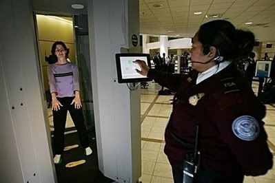 A random selection of travelers getting ready to board airplanes in Washington, New York's Kennedy, Los Angeles and other key hubs will be shut in the glass booths while a three-dimensional image is made of their body beneath their clothes.